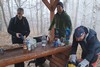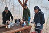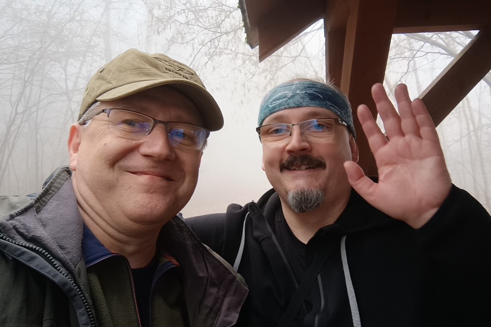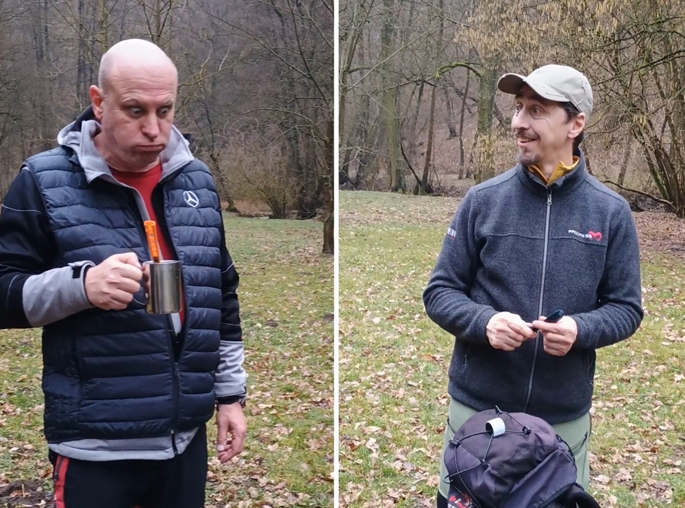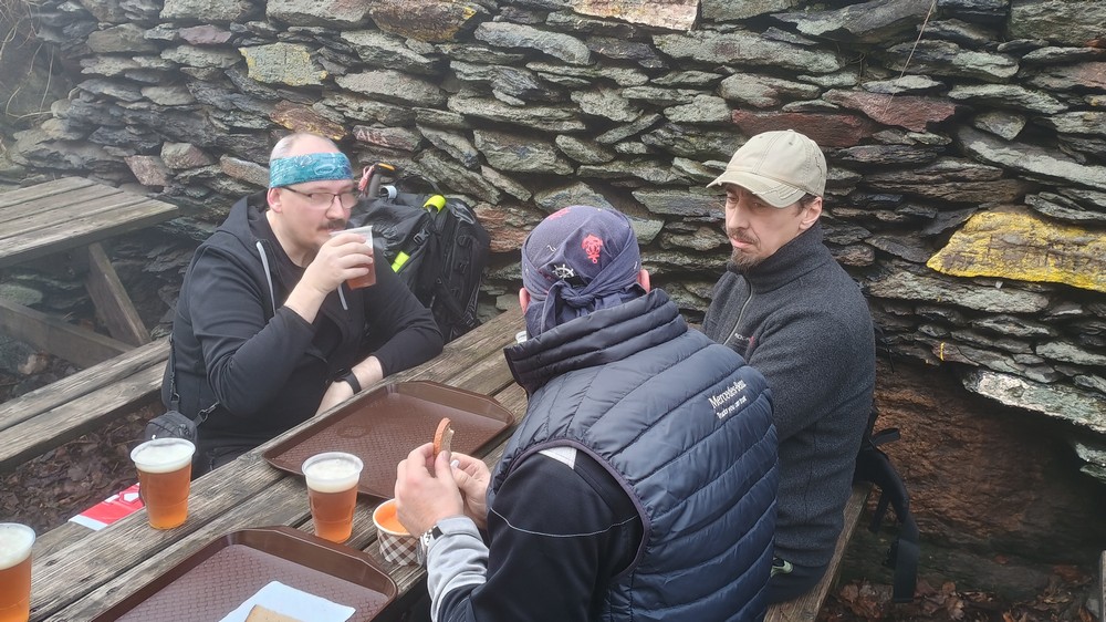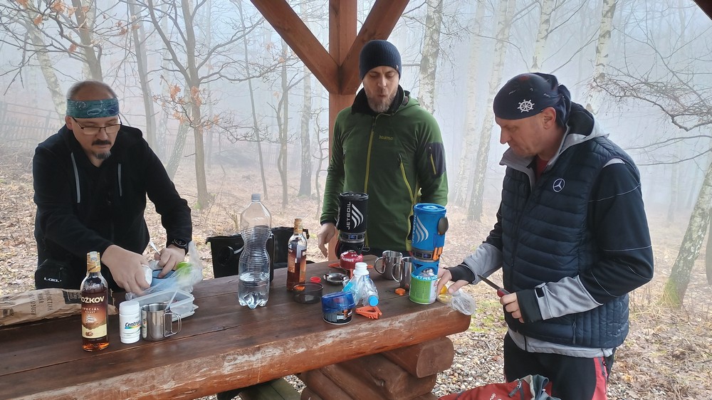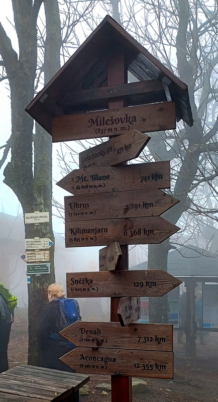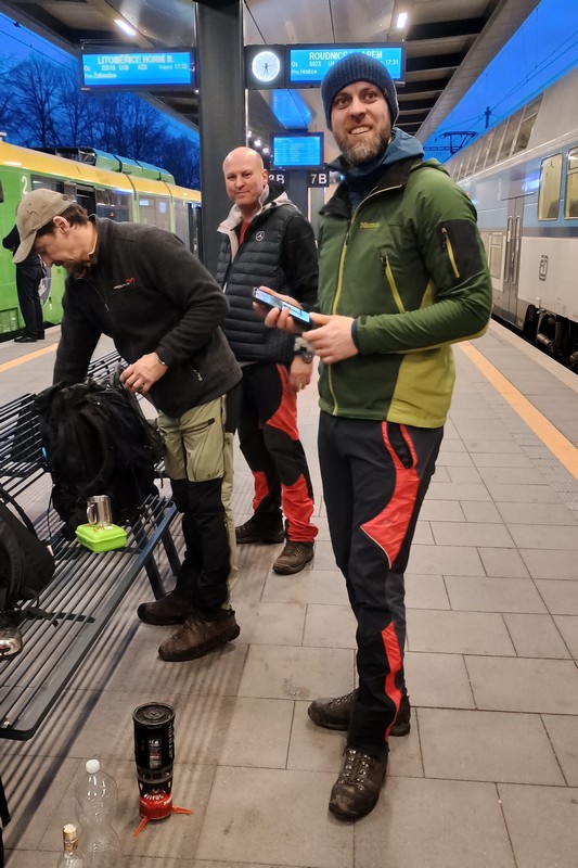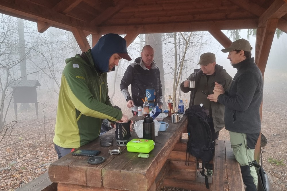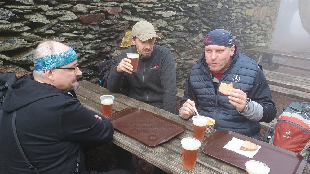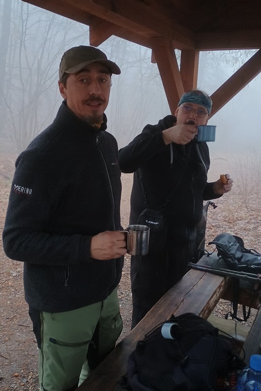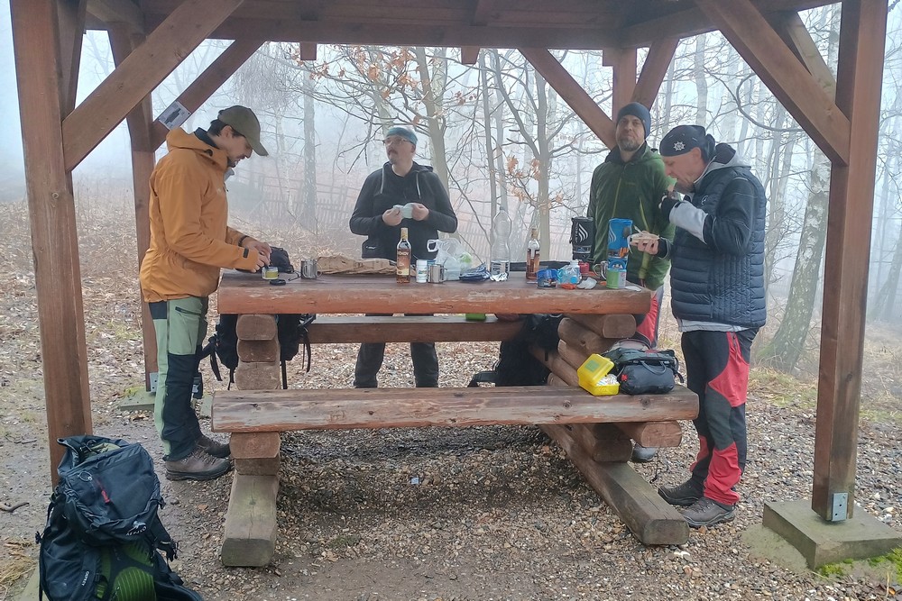 Letošní pojetí trasy bylo vybráno Honzou a to jako novinka, taková kratší Milešovka ;-). Franta musel zase vynechat, má nemocnou manželku, Michal stále své zdravotní potíže a tak nás vyráží na pouť Českým Středohořím pouho pouhých pět. Vynecháme mimořádně tedy Lovoš a nahradíme ho Milešovkou ;-). Startujeme stoupáním z Milešova kam nás dopraví autobus. Po příjemné červené za všudepřítomné mlhy dojdeme až na první přístřešek, kde posedíme a povaříme, tak jak je naším zvykem ;-). Teplé drinky zahřejí a povzbudí ;-). Všude sychravo amlha a to nevěští, že na vrcholku bude lépe :-(. Kdyby alespoň inverze, ale nic. No hlavně že neprší. Úderem poledne dobýváme kýžený vrchol Milešovky a dravě se hrneme pro občerstvení a na pivečko. Samozřejmě není nic v okolí vidět, pomalu ani na symbolické cedule rozcetníku ;-) a tak po nedlouhé pauzičce vyrážíme směrem dolů k nám známému Velemínu. Po cestě nás čeká druhý přístřešek, kde se také zastavíme a necháme promluvit vařiče a rumové opojení ;-). V dobré náladě opouštíme i místo zde a stále za mlhy s minimální viditelností pak sestupujeme do Oparenského údolí. Celé údolí sedmimílovými kroky sesvištíme jako po másle a zastavujeme se až na náhodně objeveném posezení nějakých trempíků. Možná tábořiště či co. Dopíjíme naše zásoby, grog je pořádný a tak někdo valí oči, kroutí pysky a nebo jen vrávorá kolem ;-). Potok je letos plnější, sice ne jako před léty, ale atmosféra atakující skoro místy hranici vylití ze břehů dýchá na nejednom místě. Cesta končí jako již mnohokrát v Malých Žernosekách, míjíme vinice, naší odpočinkovou lavičku ;-) a v poklidu dorazíme dolů na stanici, kde počkáme na vlak. V Lovosicích nás čeká jako skoro vždy půl hodinka na přestup, takže jak je již zvykem, přiměje nás povařit a dopít zásoby do mrtě ;-). Bylo to jiné, jiná trasa a moc fajn, tak akorát. (TK) |