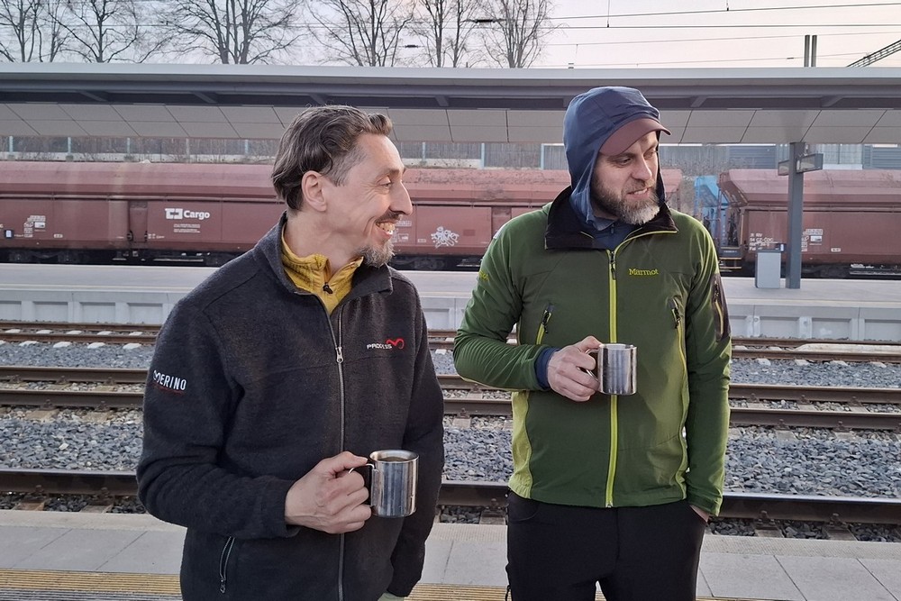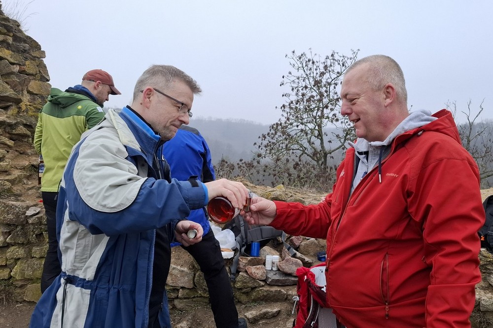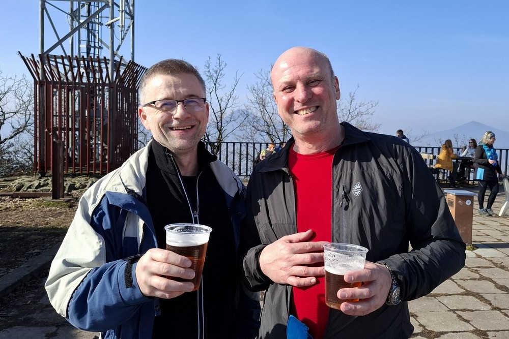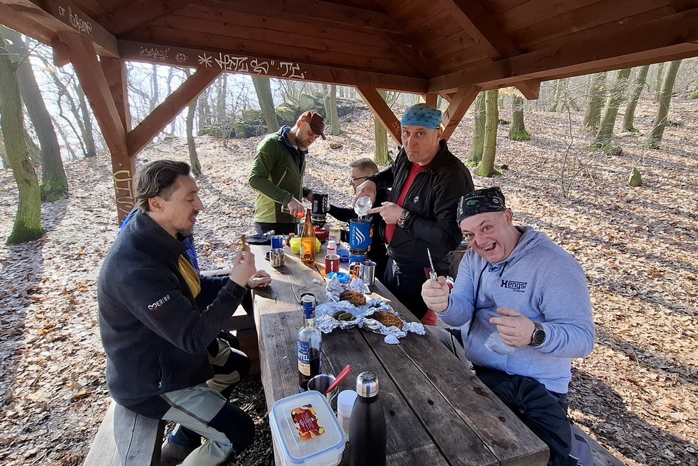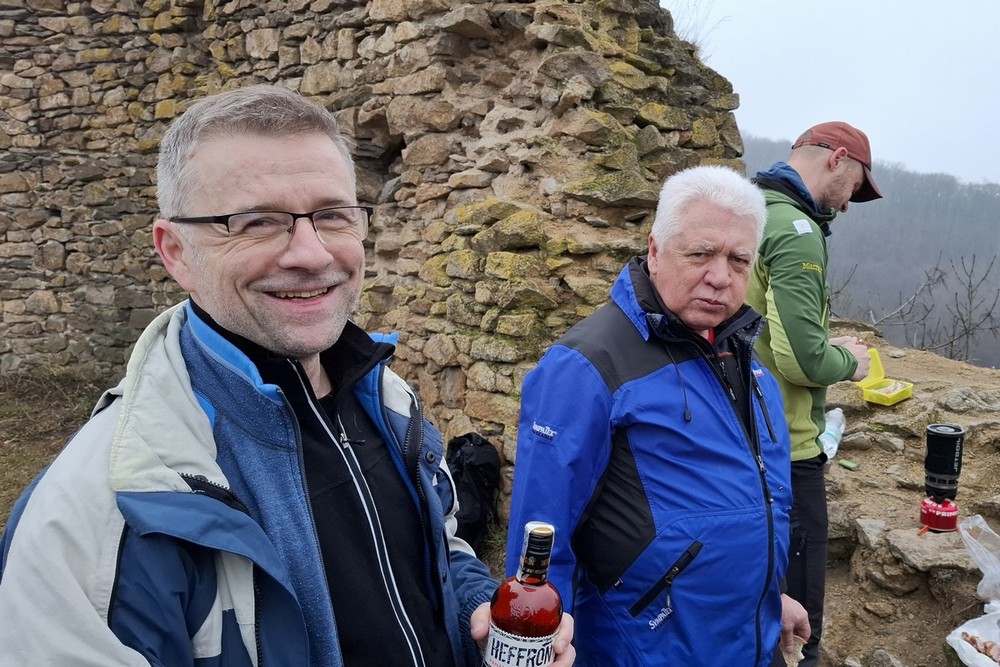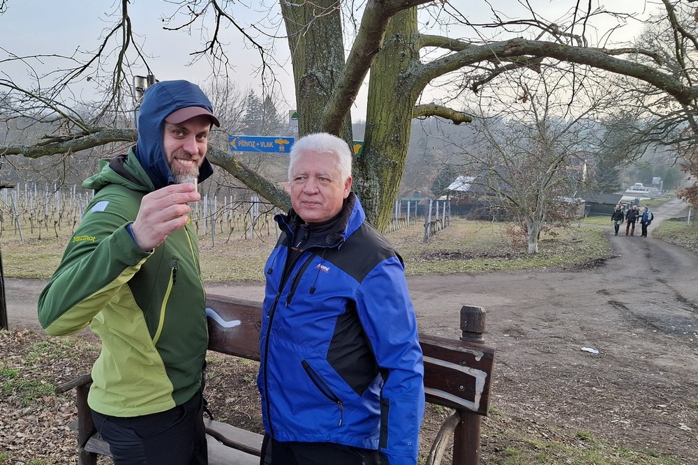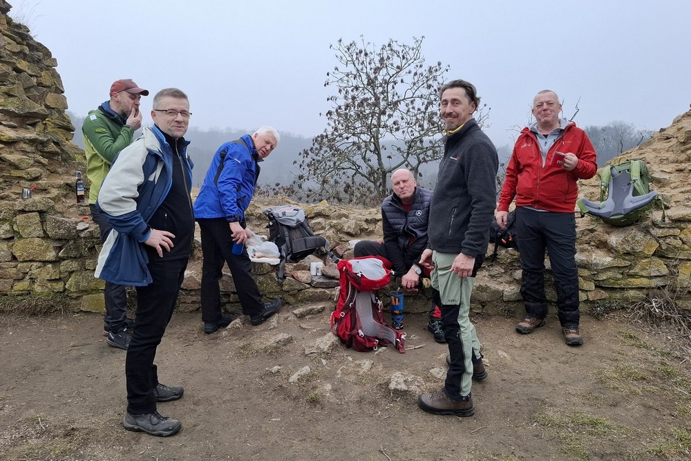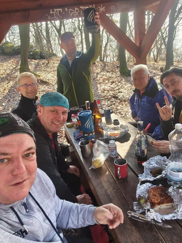 Abychom uctili ducha tradic, byl letošní ročník přechodu Lovoše opět s kýženým Lovošem a nezbytnou dávkou grogu ;-). Na poslední chvíli nám odpadnul Pavel, škoda, jinak by to byla rekordní výprava v osmi lidech. Poslední dobou vlak je plný a tak to řešíme místenkami a byla to dobrá volba. V Lovosicích krátký transfer na náhradní bus a už jen kousek k Velemínu. Je půl jedenácté a jsme na místě. Vyrážíme z Velemína, kdy si po delší době opět připomeneme Opárenské údolí s meandry řečiště jeho potoka. Za necelou půlhodinku a po malém stoupání se v poklidu uvelebíme za zdmi zříceniny Oparna, kde rozložíme náš bujarý tábor pro první rumové povaření, prokládané panáčky s rozmanitým obsahem neustále se objevujících se placatek ;-). K tomu se servíruje nespočet masitých pochutin, no prostě hodokvas ;-). Sportovní výkon jde stranou, jak jdou léta je to stále více o setkání a poklábosení s kamarády. Po poledni vyrážíme po modré na Lovoš, taková ta klasika, klasika jako je si poslechnout zda náhodou nejede vlak, který nás před lety nechal na holičkách ;-). Míjíme dvě posezení, kde na druhém těsně pod vrcholem opět, jak jinak nežli své útroby ukojíme rumovou smrští v teplé či chladné podobě. Nyní zbývá už jen kousíček na vrchol Lovoše, sluníčko se dere z poza inverzní oblohy a Fanda s Honzou nám mizí v dáli. Před druhou hodinou jsme nahoře, nádhera, pod námi zamlženo a kolem teplo a slunce. A tak není divu, že jsme zde vydrželi pěkně dlouho a vychutnali si několi piveček ;-). Padáme dolů, na hřišti pod přístřeškem v Malých Žernosekách naposledy povaříme a pak již nás čeká jen přes hřebínek kolem vinice na nádraží. Krásně včas, vlak jel přesně. Čekání v Lovosicích nakonec vede k dopití všech zásob. Vlak byl plný a polovina z nás to měla na stojáka :-(, ale bylo to po všech směrem neobyčejně úspěšné a počasíčko nám navíc opravdu přálo. (TK) |
